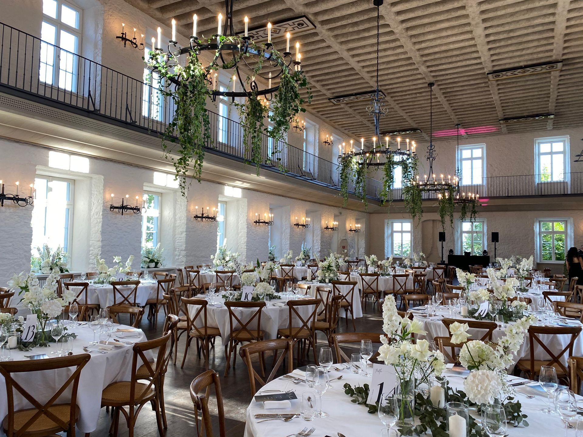 Hochzeitsfeier im Rheingau. Nicht nur der Blick auf den Rhein und die Weinberge sind ein Traum, aber die wunderschönen Location am Rheinufer. Weingüter, Schlösser oder Burgen. Aber auch ganz moderne Restaurants mit herrlichen Terrassen. Für ein Get Together bietet sich Wiesbaden oder Mainz an. Da kann das Rheingau locker mit Tegernsee und Co mithalten!
